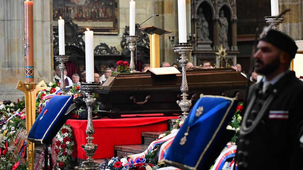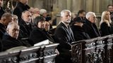 Krátce před začátkem obřadu vstoupil do chrámu prezident Petr Pavel. Zhruba půl hodiny před tím limuzína přivezla také bývalou hlavu státu Miloše Zemana, kterého doprovázela jeho manželka Ivana. Nevyužil tentokrát invalidní vozík, do katedrály šel s podporou strážců sám.