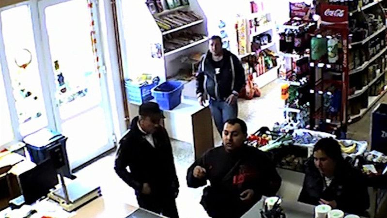 Mezitím, co spolu obě ženy hovořily, postupně do prodejny vstoupili další tři muži, kteří vybírali zboží a různě se pohybovali mezi regály. Dva z nich pak využili nestřeženého okamžiku a kradli. Jako první si dal bez placení láhev do kapsy muž s kšiltovkou na hlavě a krátce na to si pod bundu schoval láhev i druhý muž.