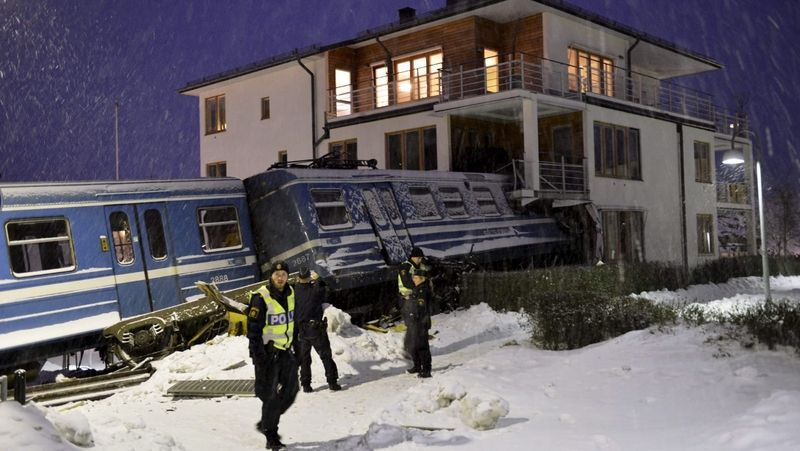 Švédská uklízečka ukradla osobní vlak a narazila s ním do obytného domu.