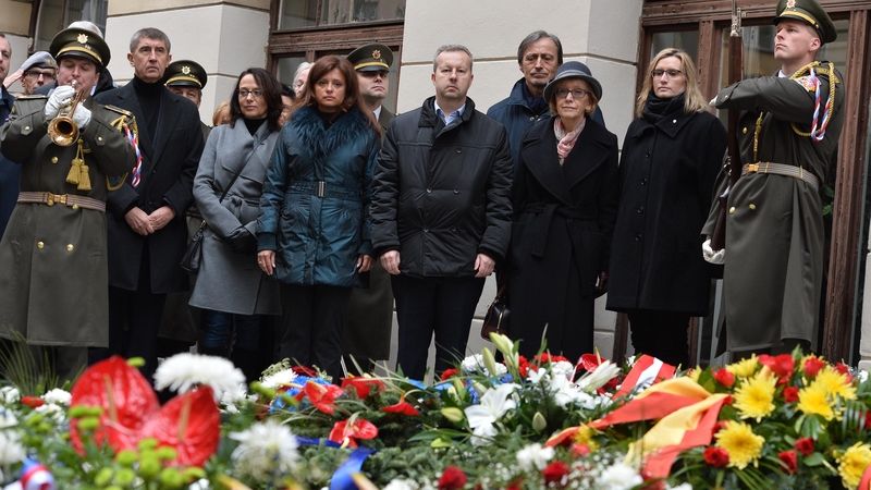 Politici hnutí ANO u pamětní desky na Hlávkově kolejí v rámci oslav výročí 17. listopadu.