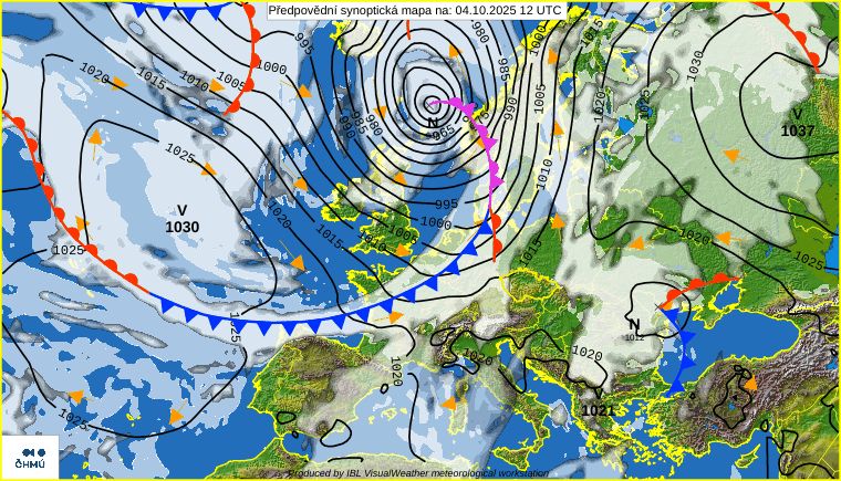 Přidružená okluzní fronta však zároveň přinese deštivé počasí doprovázené potenciálně nebezpečným větrem. Příští týden nás ovlivní pravděpodobně nevýrazný výběžek vyššího tlaku vzduchu, který může přinést další oteplení, ale charakter počasí je zatím nejistý.