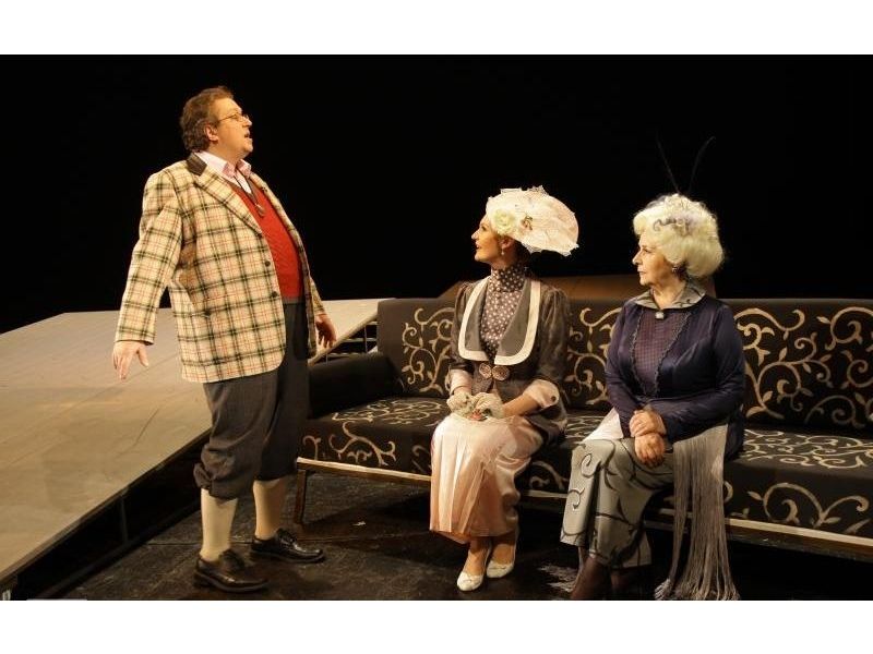 David Viktora jako Higgins, Lada Bělašková (Líza) a Veronika Forejtová (paní Higginsová) v inscenaci Pygmalion.