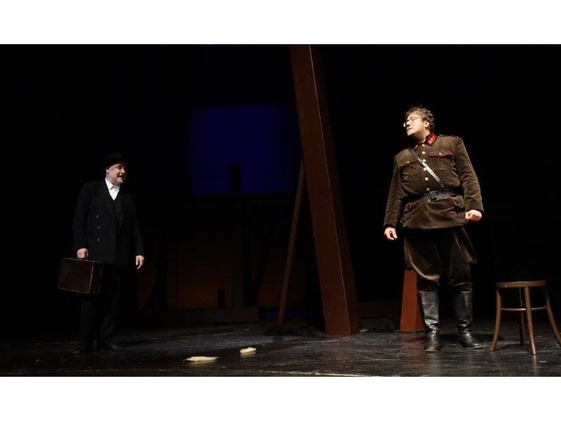 Jan Fišar (Mageri) a David Viktora (velitel četníků) v muzikálové Baladě pro banditu.