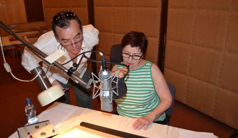 S režisérem Peterem Gáborem ve studiu Českého rozhlasu Ostrava.