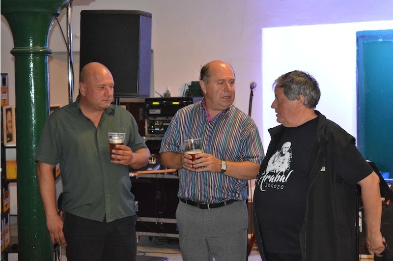 Výstavu zahajovali Miklós Orvos, majitel hrabalovské restaurace v Budapešti, Pavel Benák, ředitel nymburského pivovaru, a László Polgár