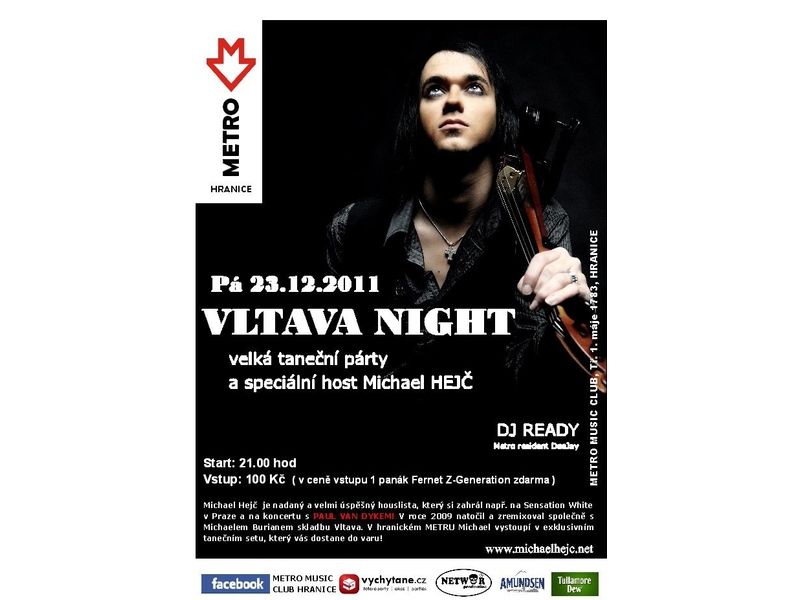 V hranickém METRU Michael vystoupí v exklusivním tanečním setu, který dostane do varu opravdu každého! Pořadatel na akci připravil společně se sponzorem večera akci na Tullamore Dew 2+1 panák zdarma a mnoho zajímavých dárků. Po zbytek večera bude hrát místní residentní DJ clubu - DJ Ready.