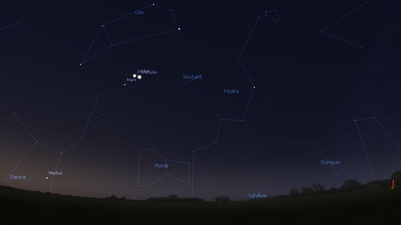 Celou trojici pak od poloviny října ještě doplní maličký Merkur, který bude krátce pozorovatelný před východem Slunce a jehož nalezení bude pro pouhé, dalekohledem neozbrojené oko patrně největší výzvou.