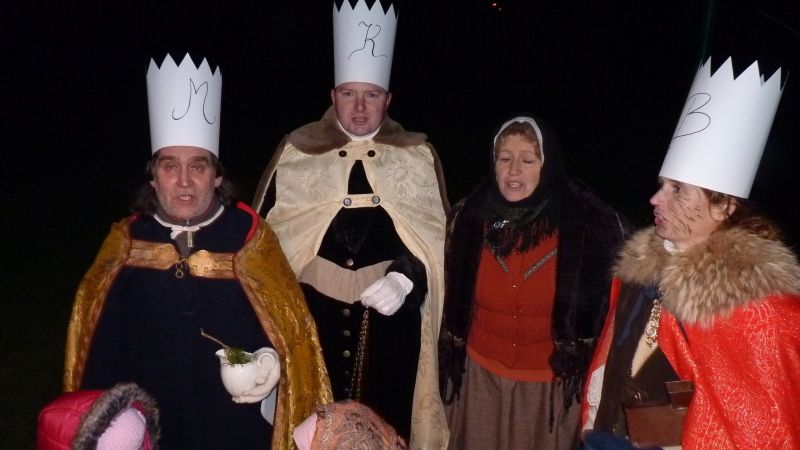 Na úplný konec pak na sál přišli Tři králové, kteří poté vyrazili se svým přáním do nového roku po obci. Tam na ně už netrpělivě čekaly hospodyně, aby jim podaly nejen něco k zahřátí, ale i na zub. Kašpar, Melichar a Baltazar obcházeli domácnosti až do pozdních večerních hodin, aby všem na dveře napsali magický nápis K+M+B+2012.