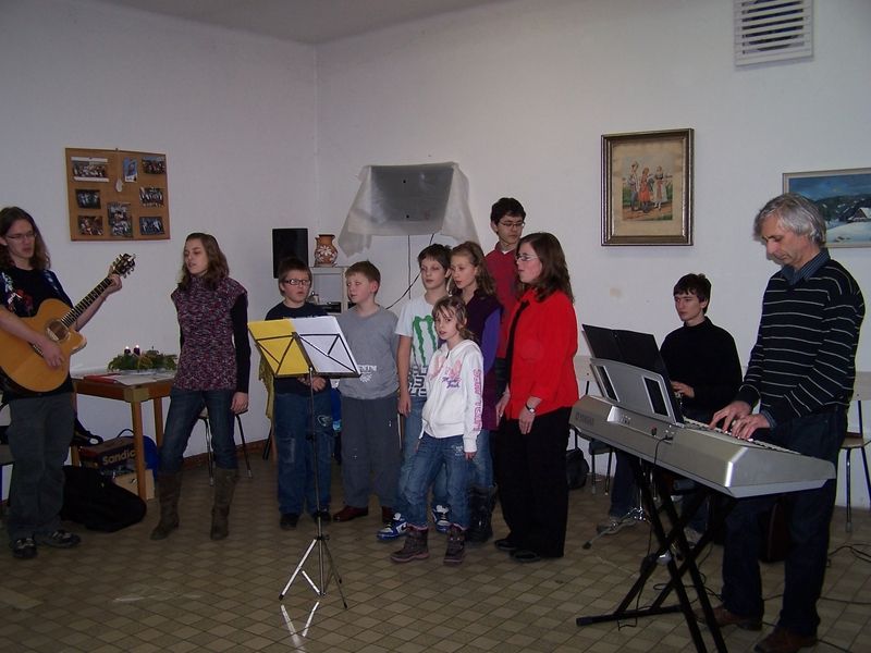 V sále osadního výboru to dýchalo končícími svátky a atmosféra byla přímo andělská. Svíčky na svícnech hořely, skořice provoněla celý sál, a kdo chtěl, mohl si dát kávu, čaj či grog se zákuskem. K tomu všemu krásně zpíval sbor pod vedením Alexandra Visiče - nejprve vánoční písně a koledy a poté i něco veselého do nového roku.