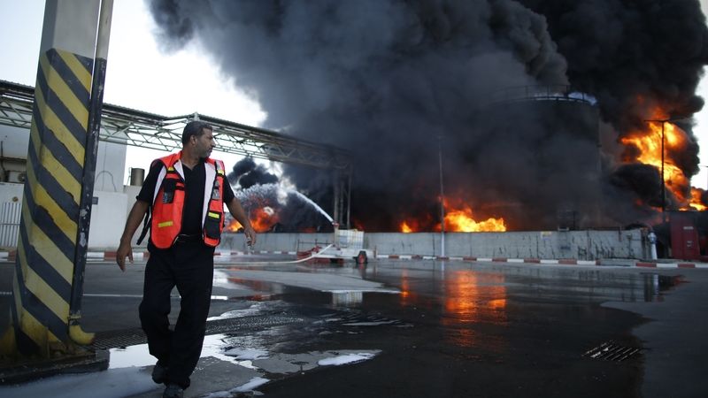 Dvě tankové střely podle mluvčího distribuční firmy Džamála Dardasávího zasáhly jednu ze tří palivových nádrží. Elektrárna, která zajišťuje zhruba třetinu elektřiny pro palestinské pásmo, funguje na naftu.