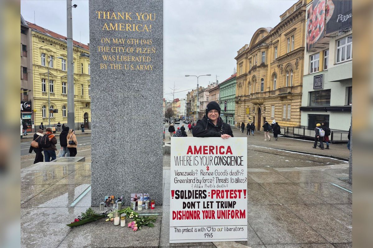Trump dělá ze světa kůlničku na dříví, protestovala Plzeňanka u amerického pomníku