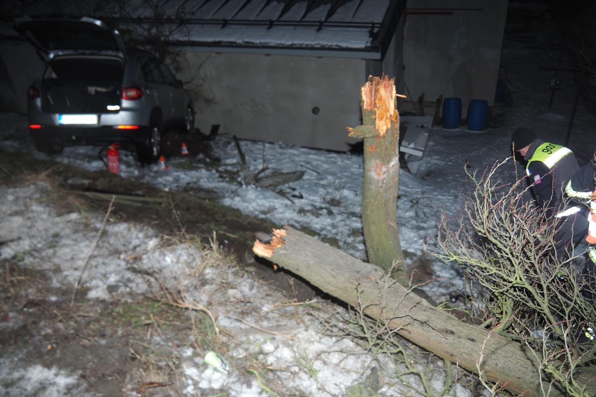 Opilec v autě na Šumpersku projel plotem a srazil strom, zastavila ho až zeď domu