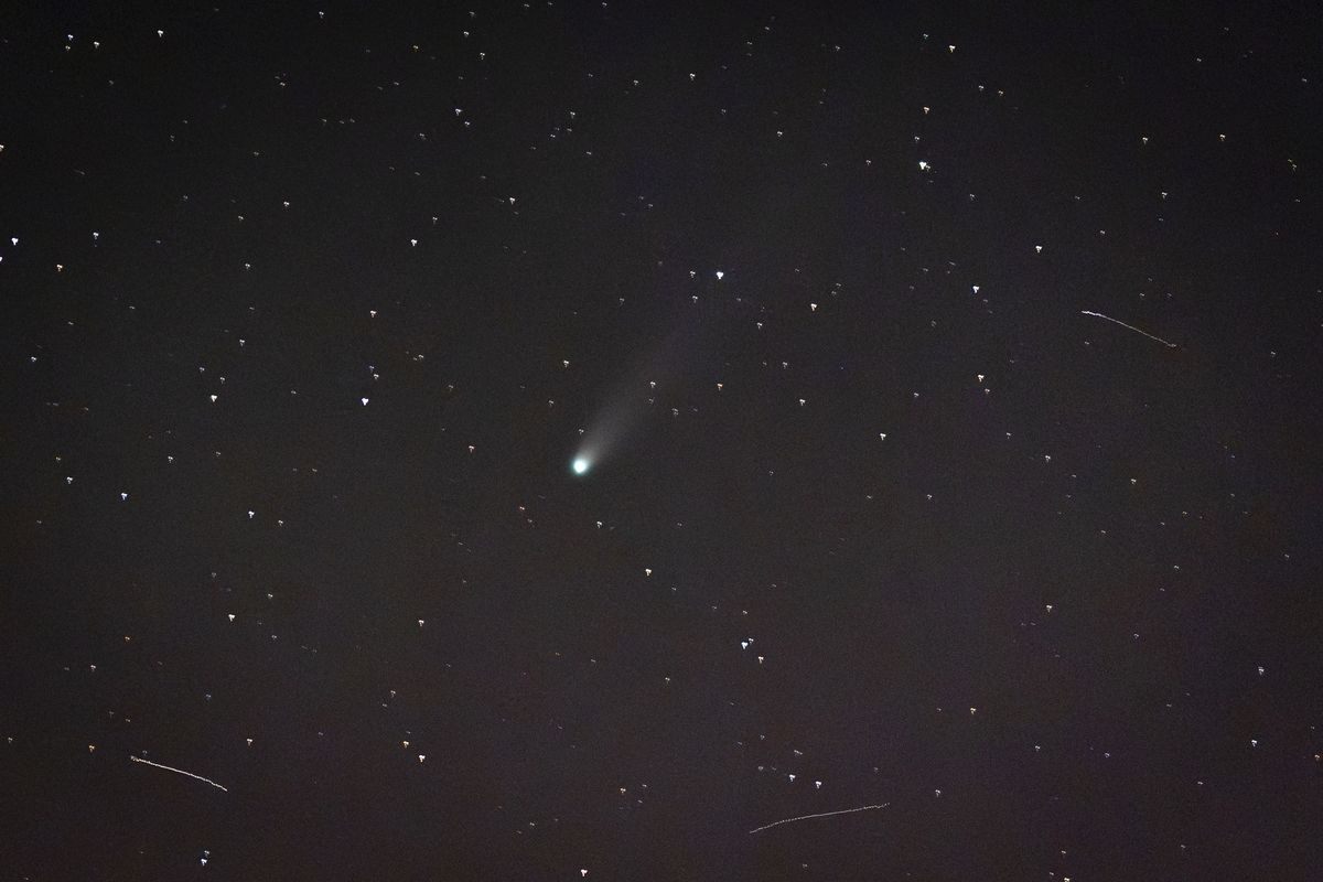 FOTO: Vzácnou kometu Lemmon ozdobila polární záře