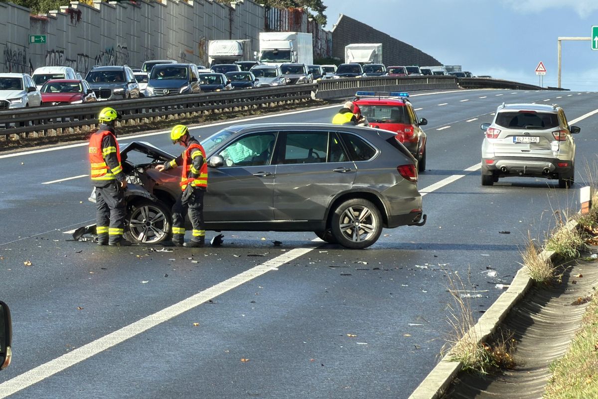 Dálnice D1 u Prahy zablokovala hromadná nehoda, řidič dostal smyk