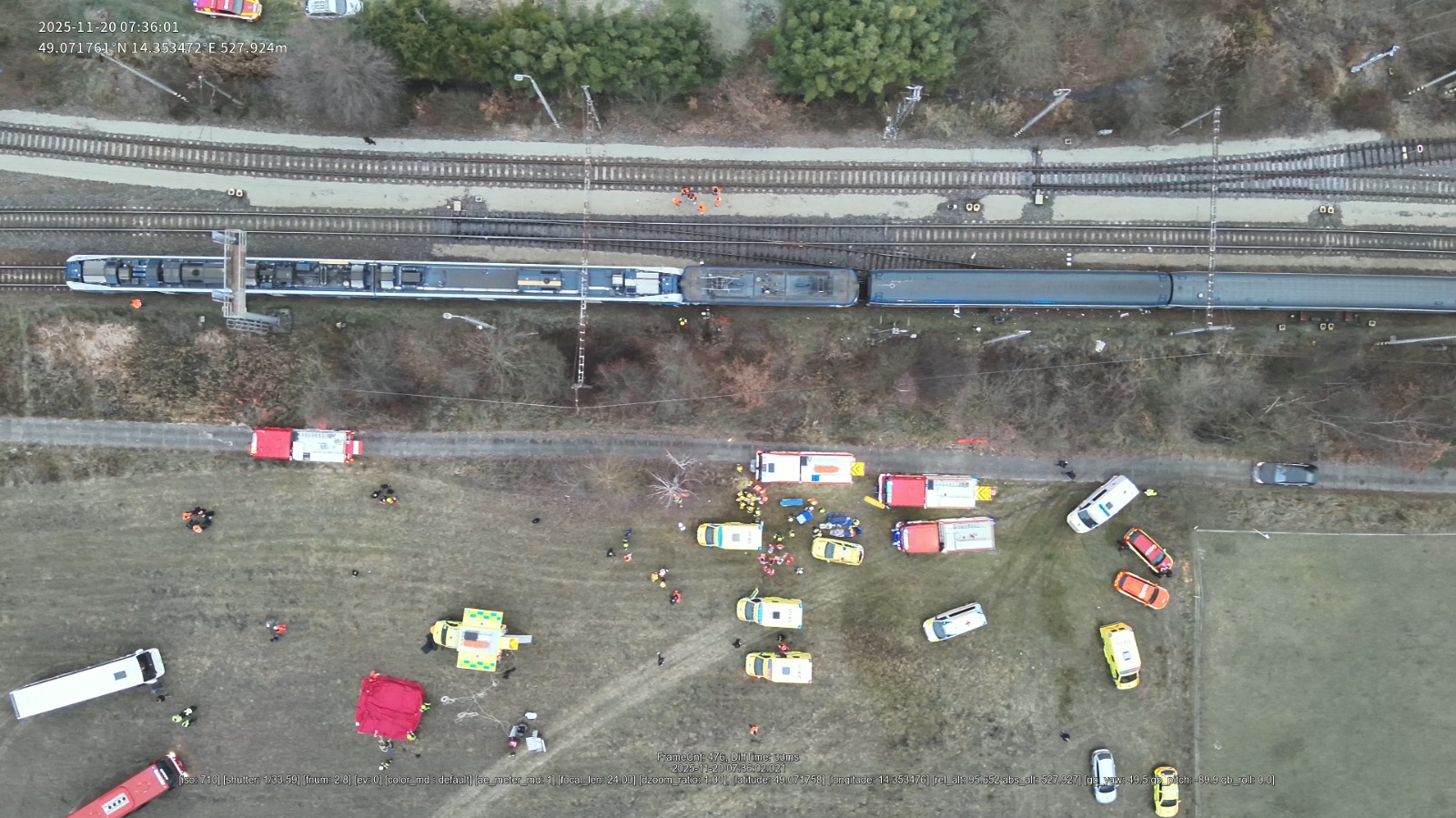 Čelní srážka. Letecké záběry z nehody vlaků na Českobudějovicku