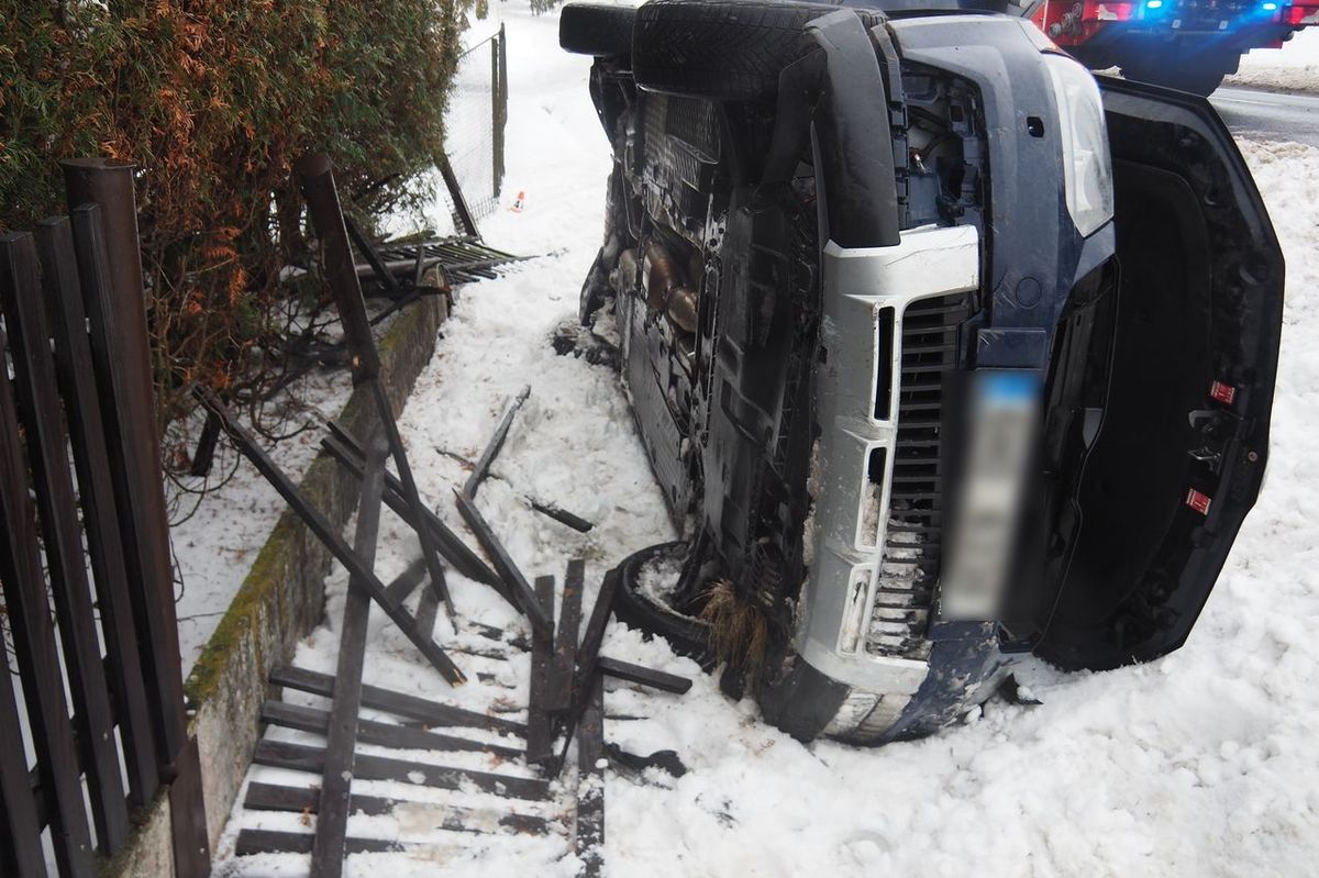 Řidička na Šumpersku zbořila autem oplocení zahrady. Vozidlo skončilo na boku