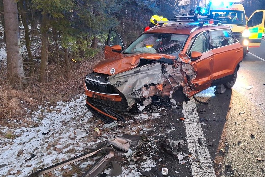 Na Bruntálsku se čelně srazila dvě auta. Při nehodě se zranilo osm lidí včetně dětí