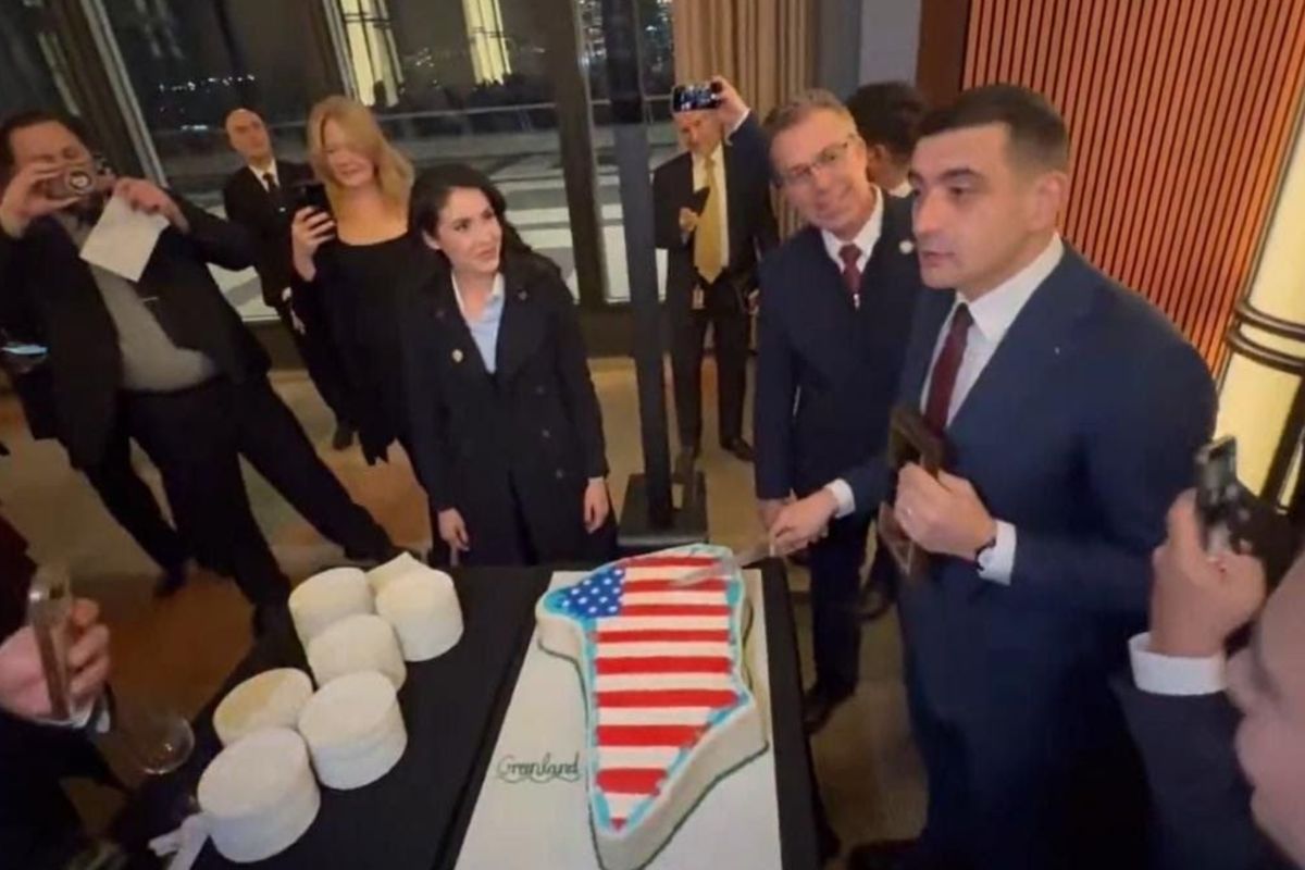Lídr rumunské krajní pravice krájel v USA dort ve tvaru Grónska s republikány