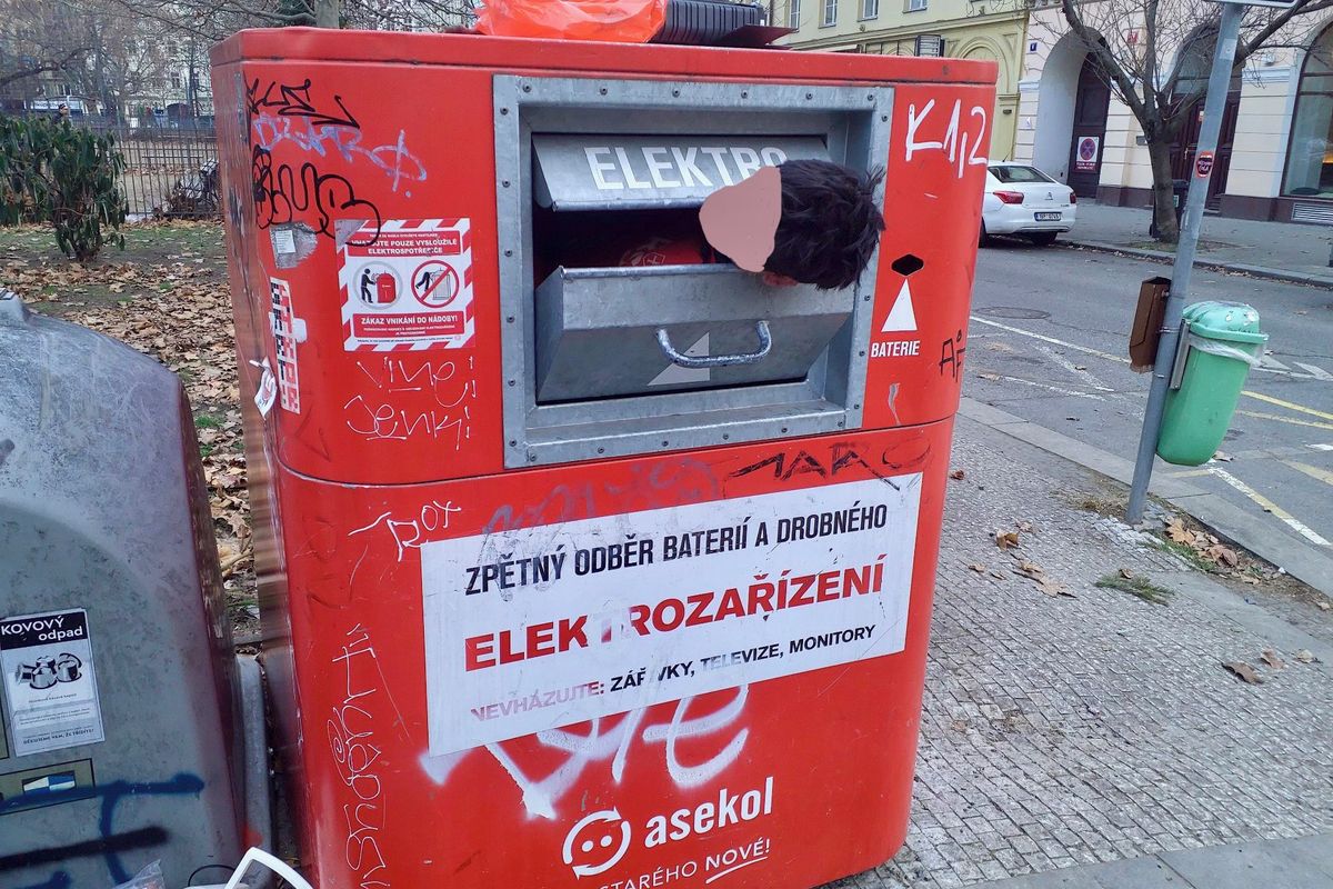 Muž v Praze se zasekl v kontejneru na elektroodpad