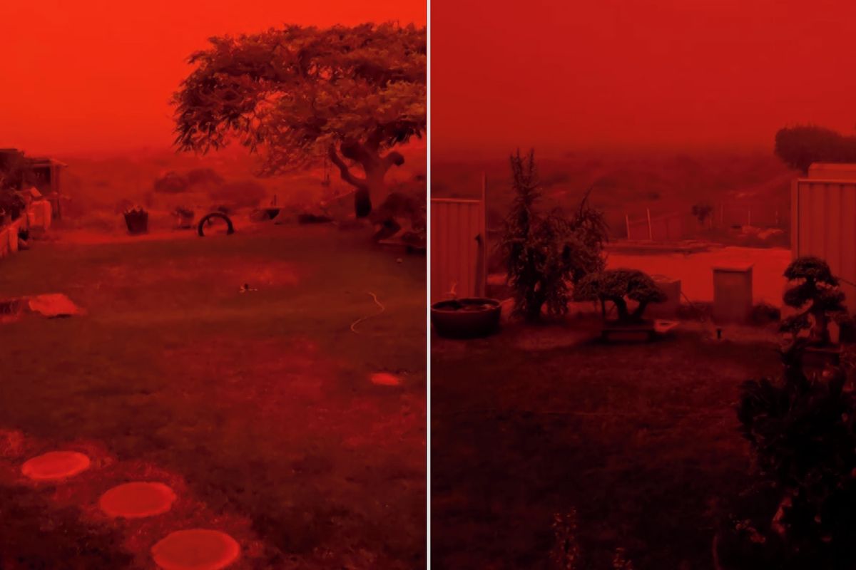 Rudo jako na Marsu. Žraločí zátoku v Austrálii pohltila prachová bouře