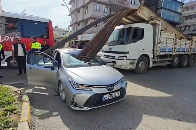 Dramatická dopravní nehoda se odehrála v jižním Turecku, když nákladní vůz přepravující ocelové tyče přibrzdil na křižovatce tak, že náklad sklouzl na...