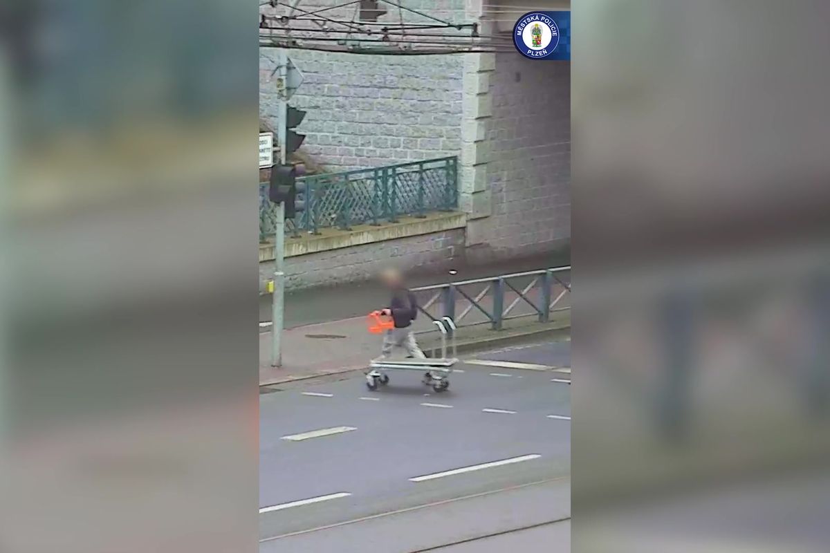 Plzeňští strážníci si na kamerách všimli muže, který před sebou tlačil nákupní vozík. Nepohyboval se ale u obchodního centra, nýbrž poblíž nádraží a pokračoval...