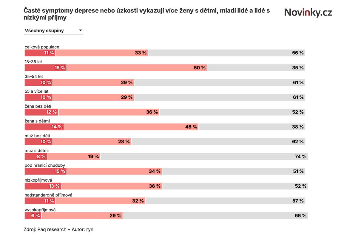 Příznaky deprese nebo úzkosti trpí pětina lidí