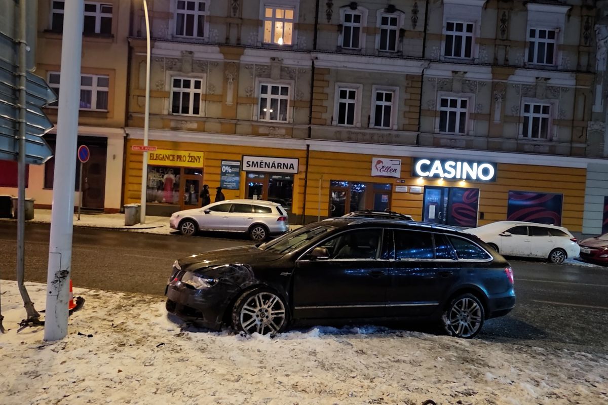 Řidič škodovky v Táboře zkolaboval za volantem. Přejel do protisměru a naboural do sloupu