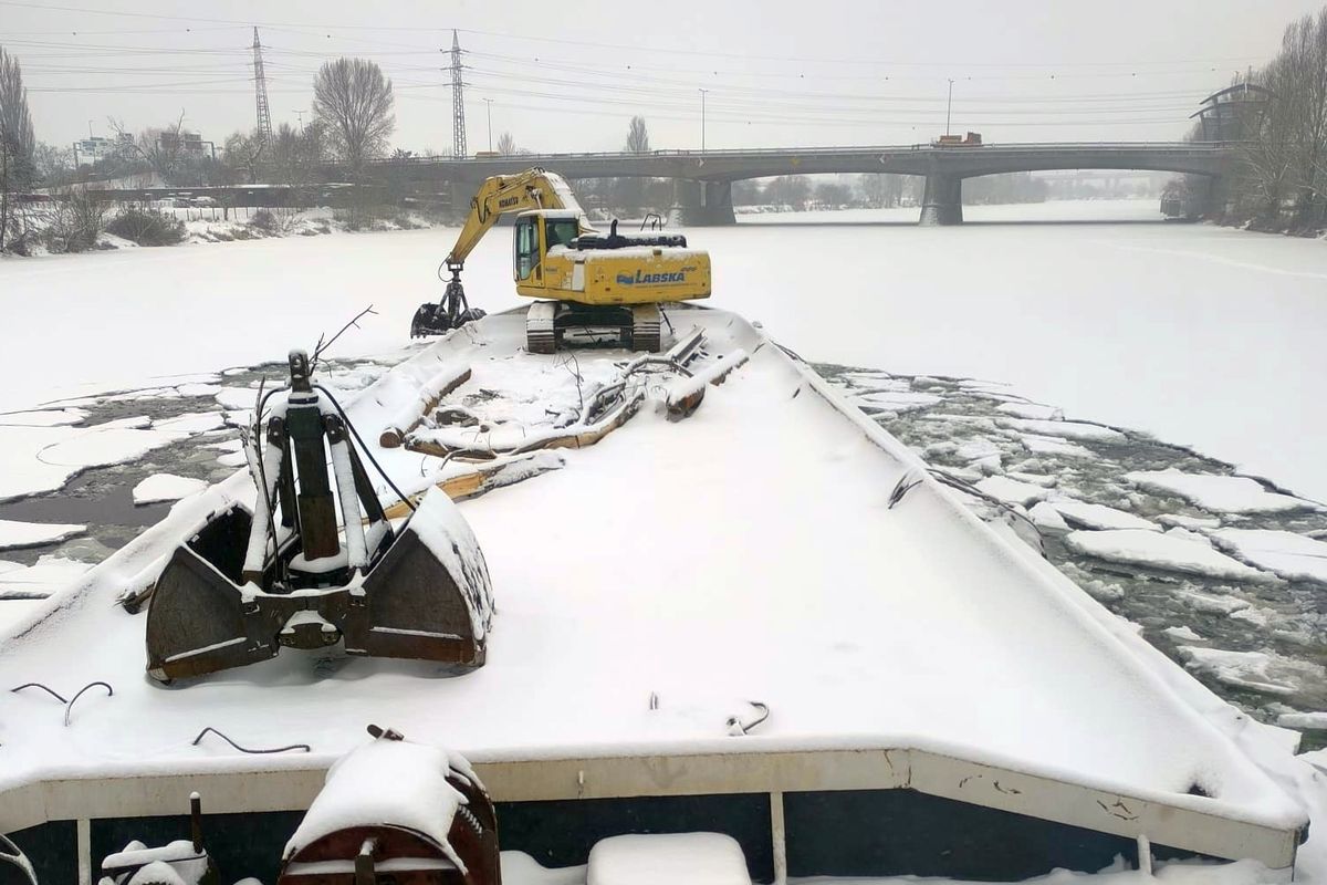 Plovoucí bagry a remorkéry začaly na řece Berounce poblíž Prahy u soutoku s Vltavou prorážet ledové kry. Správci z Povodí Vltavy narušují zmrzlé překážky...