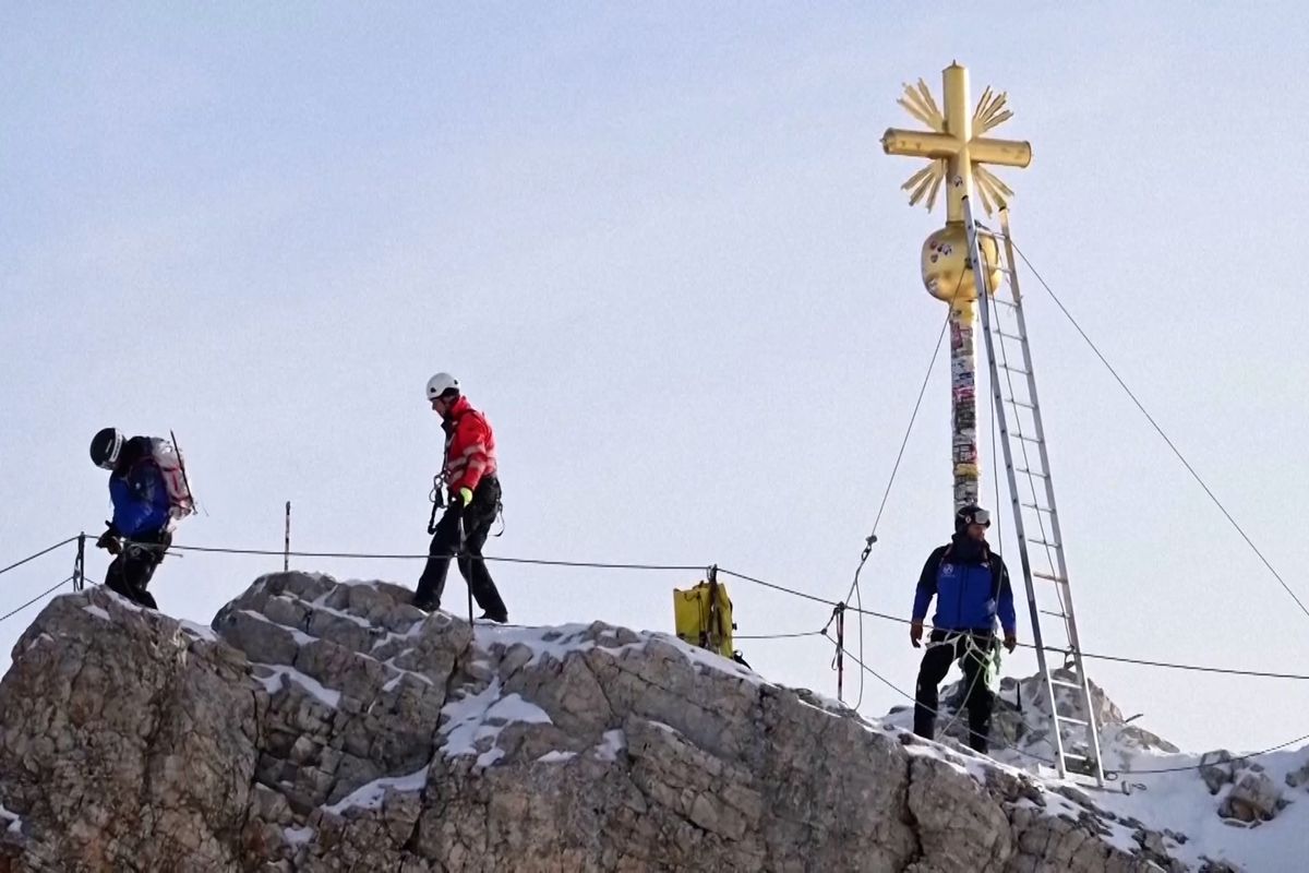 Pozlacený vrcholový kříž na nejvyšší německé hoře Zugspitze musí kvůli stovkám samolepek od návštěvníků projít restaurováním. Náprava je značně složitá...