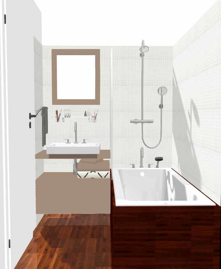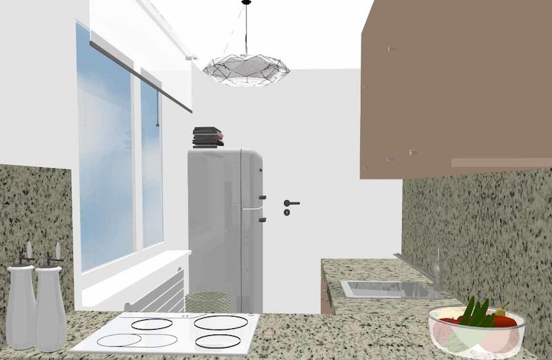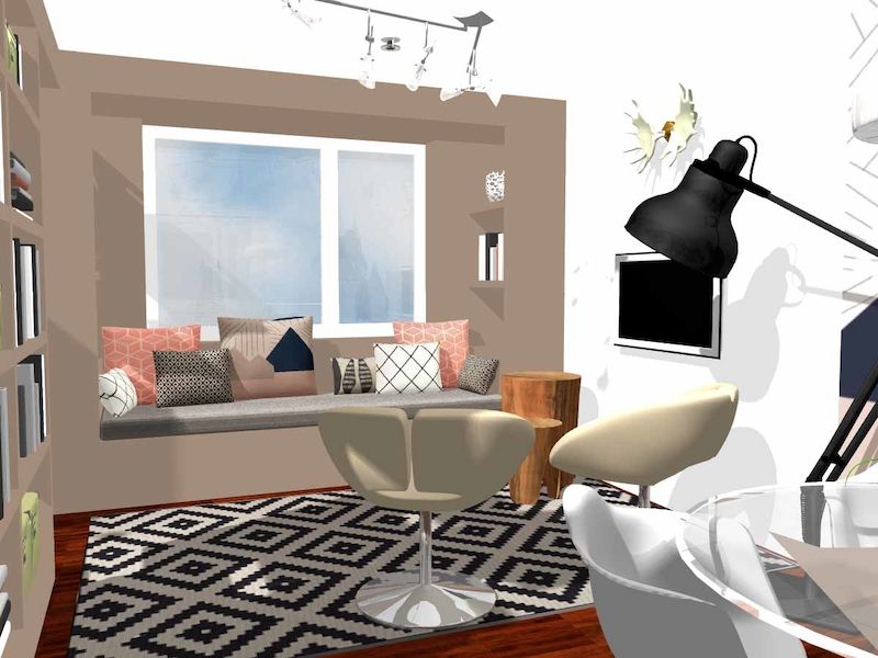 Jedná se o single mladou ženu, která si přeje vytvořit moderní interiér, jenž bude počítat se sezením v okně v obývacím pokoji. Koupelna a WC musí zůstat oddělené.