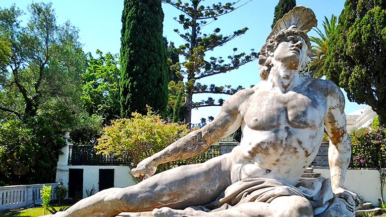 V zahradě neoklasicistního paláce Achilleion uvidíte i nádhernou sochu Umírající Achilles.