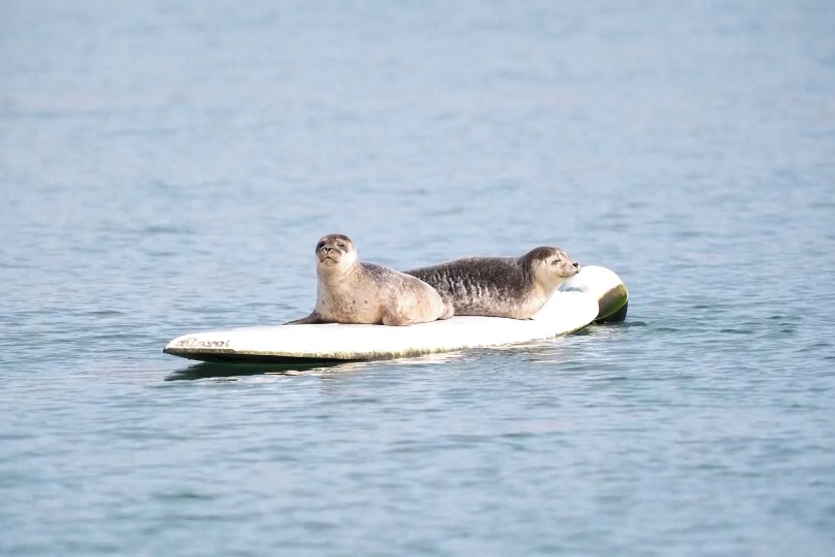 Tuleni na surfařském prkně okouzlili irské městečko. Hovoří se i o soše