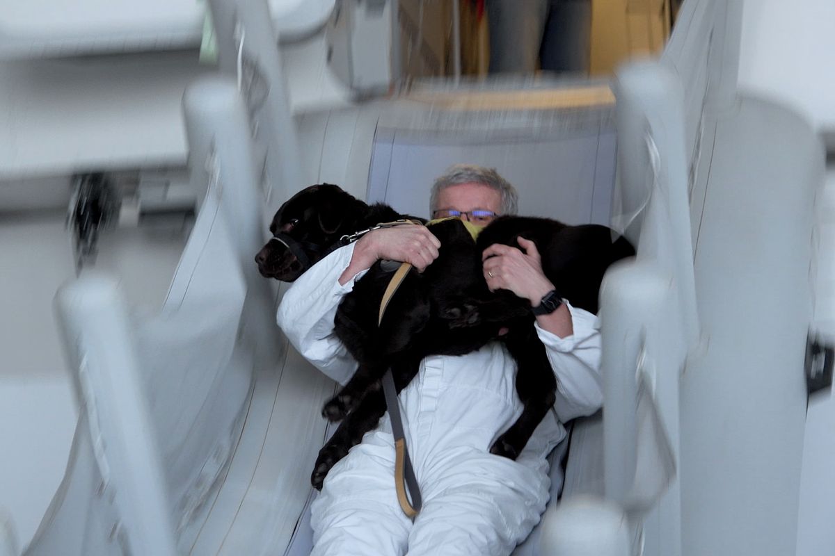 Panika v letadle i evakuační skluzavka. Natočili jsme, jak se cvičí asistenční psi na letišti