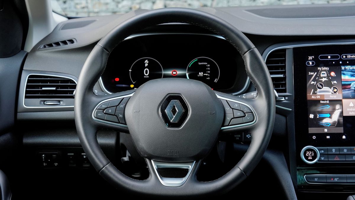 Po usednutí do kabiny už megane svůj věk neskryje, její architektura je dnes těžké retro. Pro řidiče, kteří preferují přehlednost a snadné ovládání, to však bude spíš plus. Stačí se podívat na klasický panel klimatizace nebo příjemně velká a jasně oddělená tlačítka na volantu, který je v duchu retro-módy stále kulatý. Ani to dnes není zvykem.