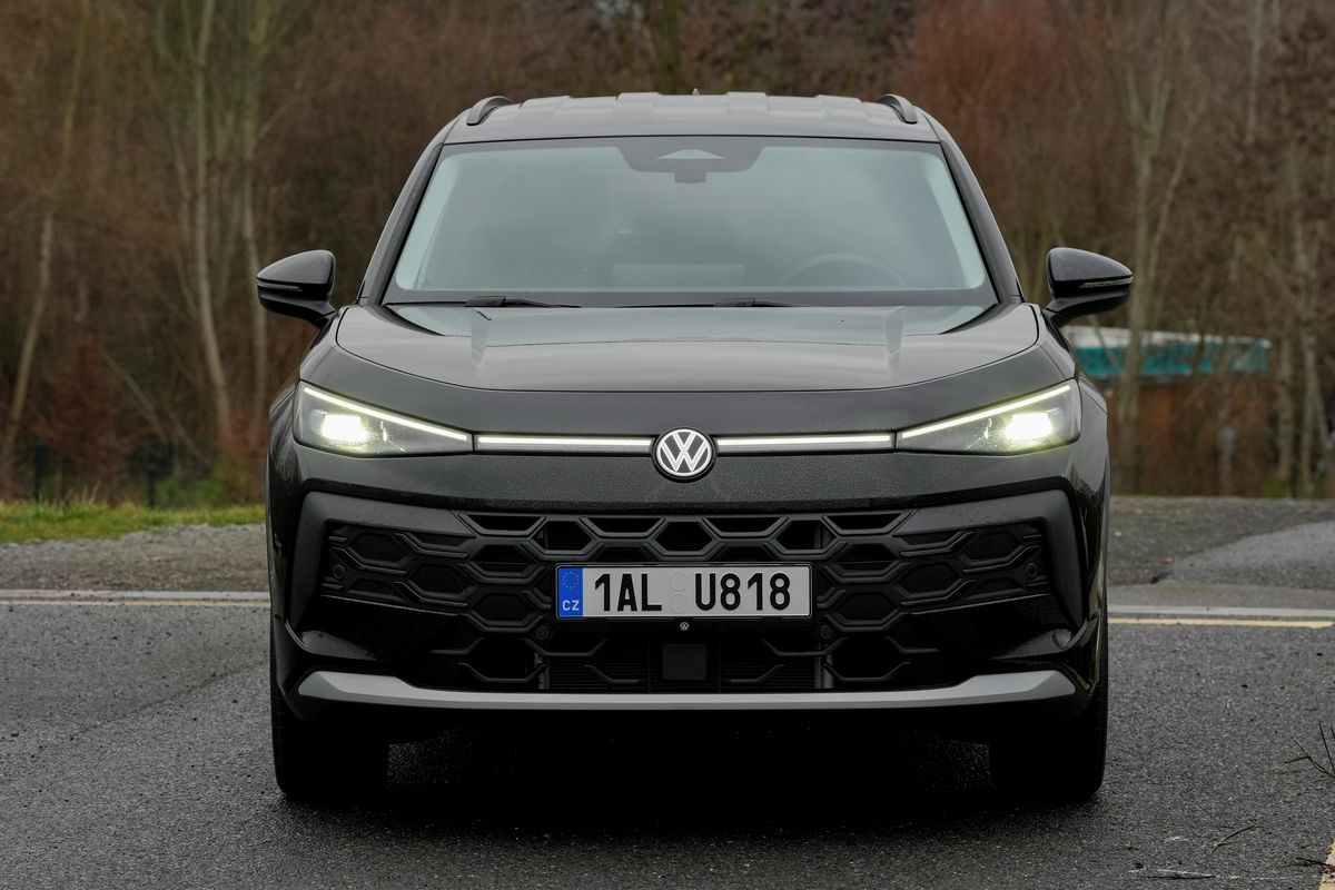 Standardem jsou LED světlomety, které propojuje osvětlená linka, a nechybí ani svítící logo. Tradiční masku chladiče nahradil nárazník s výraznou mřížkou, jehož masivnost u černě lakovaného testovaného vozu rozbíjí alespoň matně stříbrný dekor, který se objevuje také podél linie střechy a v zadním nárazníku.