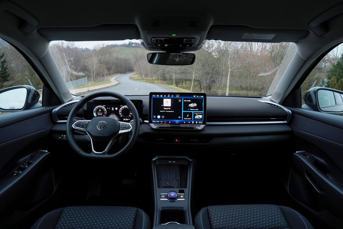 Kabina zaujme novou architekturou palubní desky, která je částečně čalouněná, má elegantně minimalistické výdechy ventilace a pracuje s na dotyk příjemnými materiály. Před řidičem je digitální přístrojový štít se standardní úhlopříčkou 10,25 palce, ze středu palubní desky pak vystupuje 12,9palcový displej infotainmentu.