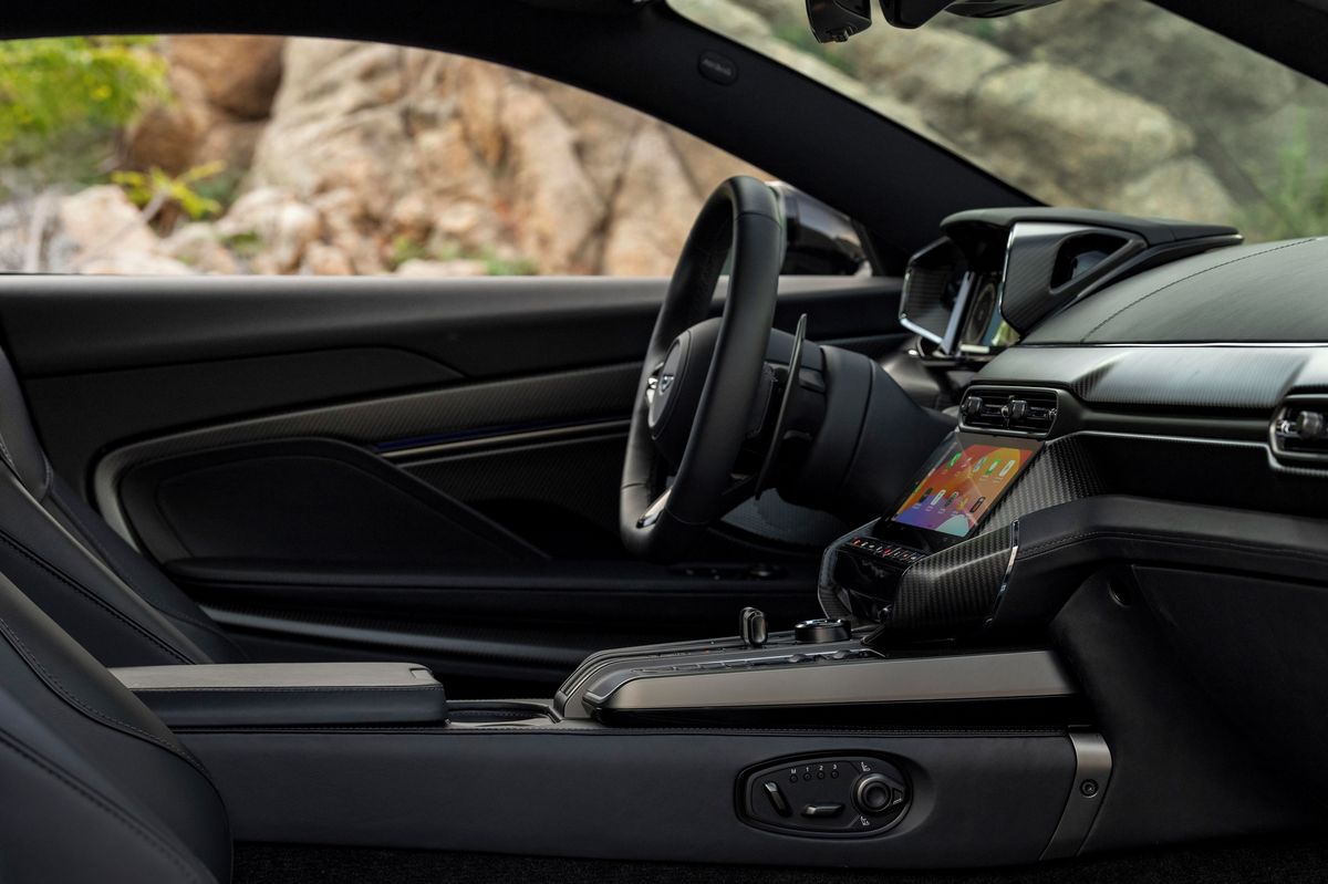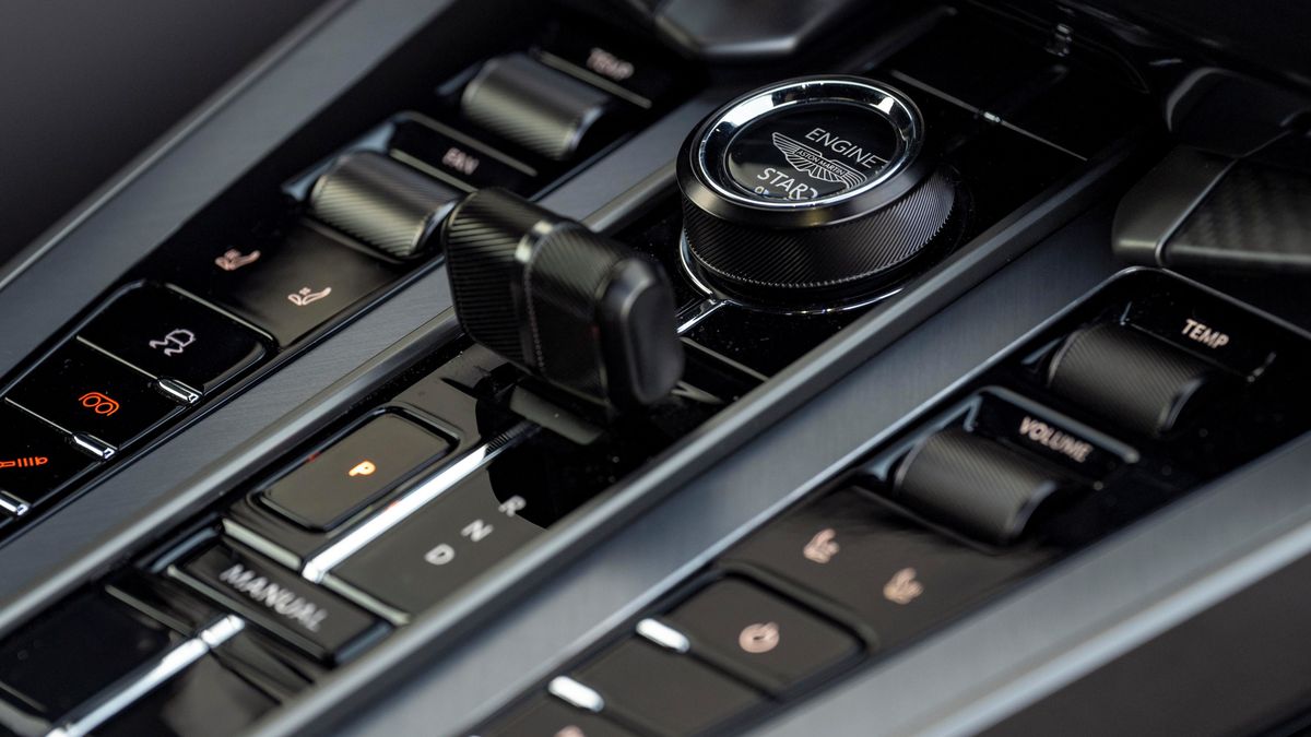 Uvnitř posádku přivítá velmi kvalitně provedený interiér. Má tradiční přístup, nechybí například dostatek kvalitně provedených tlačítek na středovém tunelu. Mísí jej však i s novými technologiemi – oblastí, ve které se Aston Martin nesmírně posunul. Infotainment svou kvalitou zobrazení, výbavou a uživatelskou přívětivostí dokonce míří na špičku průmyslu, což je u malosériového výrobce nezvyklé.