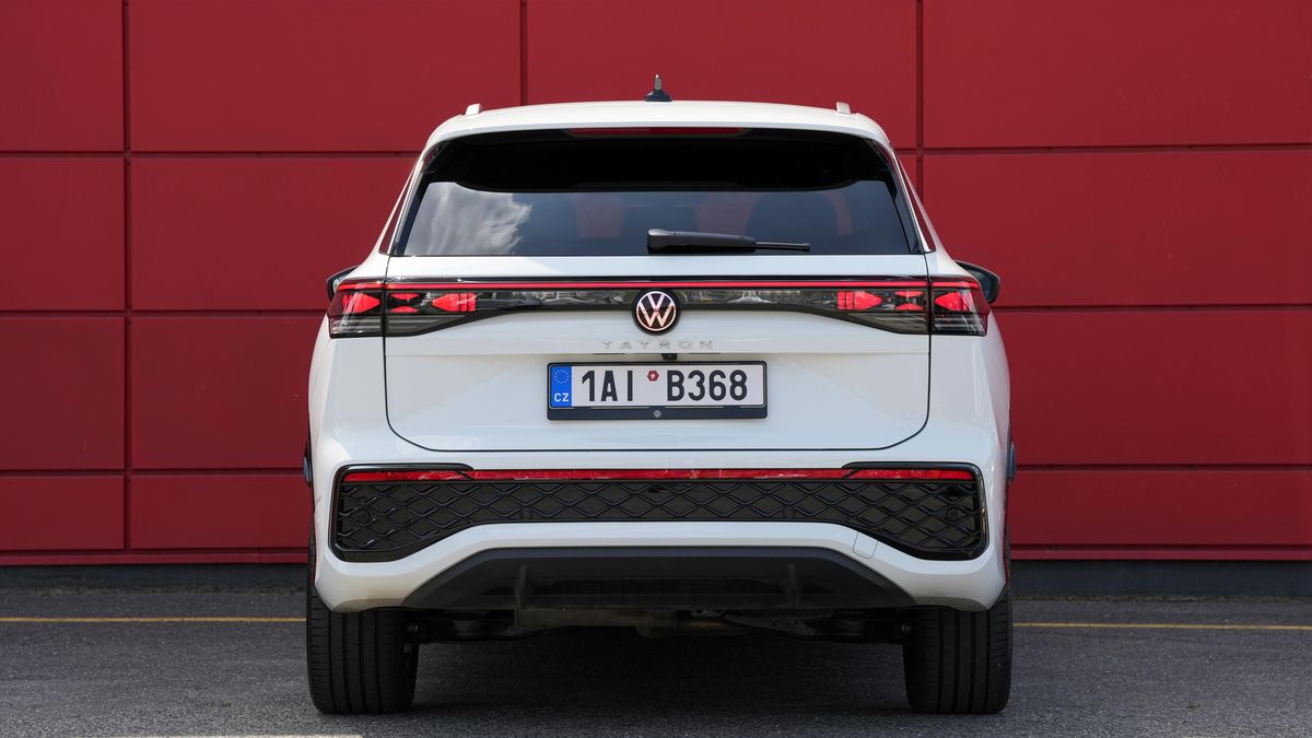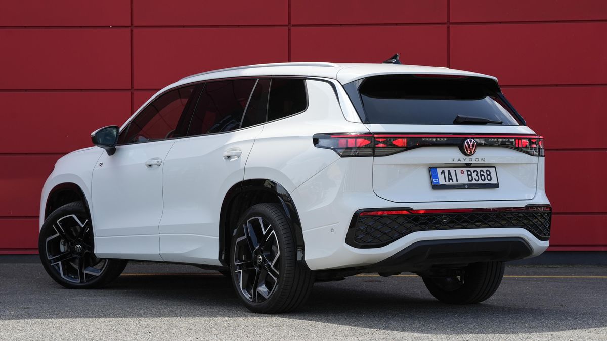 Tayron není pouze prodlouženým tiguanem, který zaplňuje prázdné místo v nabídce pod vrcholným SUV modelem Touareq (jehož vlajkovou pozici by podle spekulací mohl v budoucnu dočasně zastat). Oproti velmi zakulacenému tiguanu totiž nabízí i výraznější tvary, které u testovaného vozu umocňuje sportovně laděná výbava R-Line.