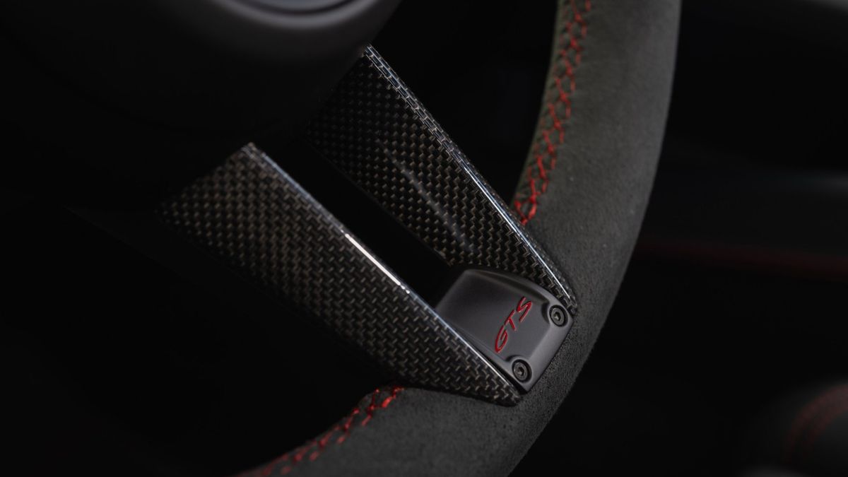 Uvnitř je pro verzi GTS kabina čalouněna materiálem Race-Tex a černou kůží. Zákazníci si navíc mohou nechat sladit prošívání s barvou exteriéru, pokud si zvolí jeden z odstínů Carmine Red, Slate Gray Neo a Lugano Blue. Logo GTS se nachází na volantu, adaptivních sportovních sedadlech nastavitelných v 18 směrech a grafice digitálního kokpitu.