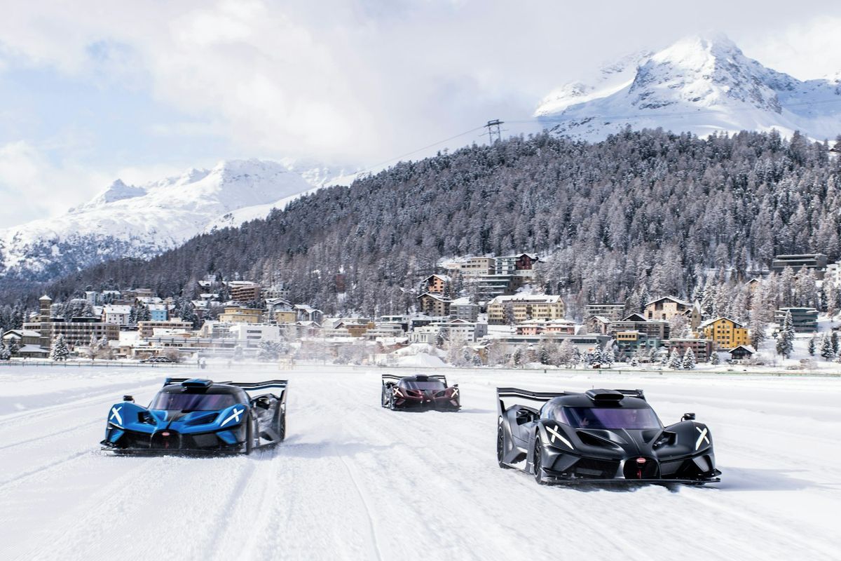 Největší pozornost však zaslouženě sklízely vozy Bugatti Bolide, hypersporty určené pro závodní trať. Cena každého z nich startuje od 4 milionů eur (cca 97,3 milionu korun). Eleganci vozů na ledové ploše pak na snímcích a videu z místa dokreslovala dvojice krasobruslařů.