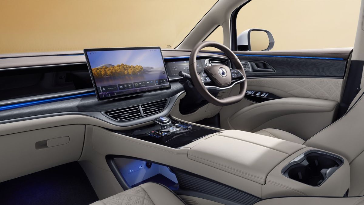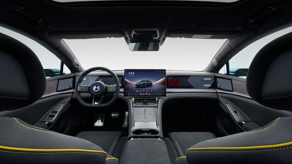 V kabině zaujme 17,3" centrální displej doplněný 13,2" přístrojovým štítem a stejně velkým displejem pro spolujezdce. Řidič má k dispozici také head-up displej s promítanou úhlopříčkou 50" a dále v kabině najdeme kompresorovou chladničku schopnou vyvinout teplotu až -6 °C či celkem tři 50W bezdrátové nabíječky mobilů.