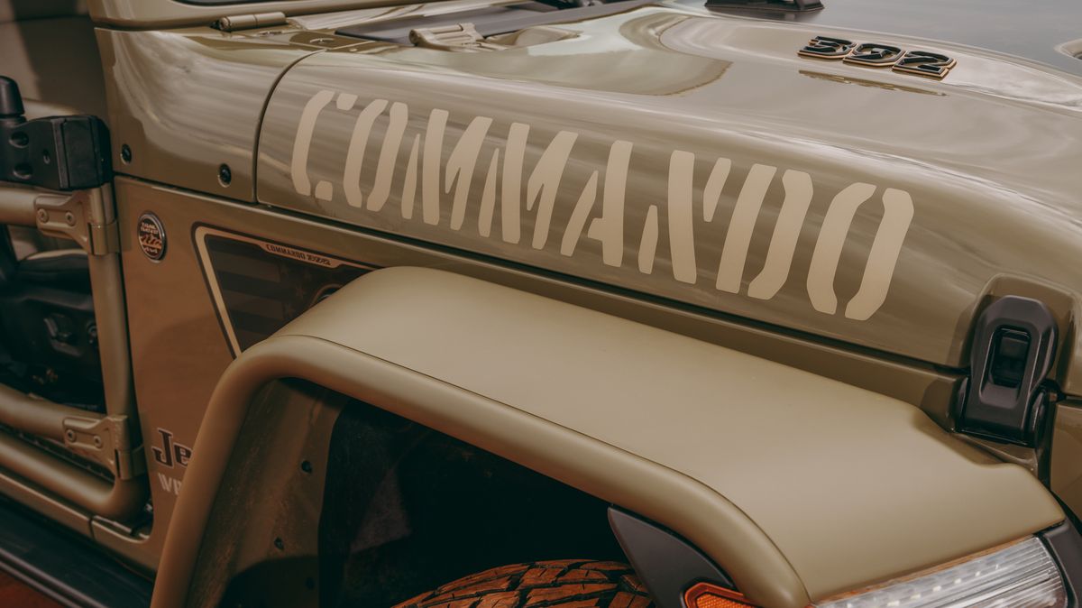 Základem modelu Jeep Wrangler Commando je Wrangler Rubicon 392, tedy klasický offroad osazený 6,4litrovým motorem V8. Vůz ale dostal řadu úprav karoserie, které mu propůjčují mnohem odvážnější armádní design, což umocňuje i tradiční zelná barva a značení v armádním stylu.