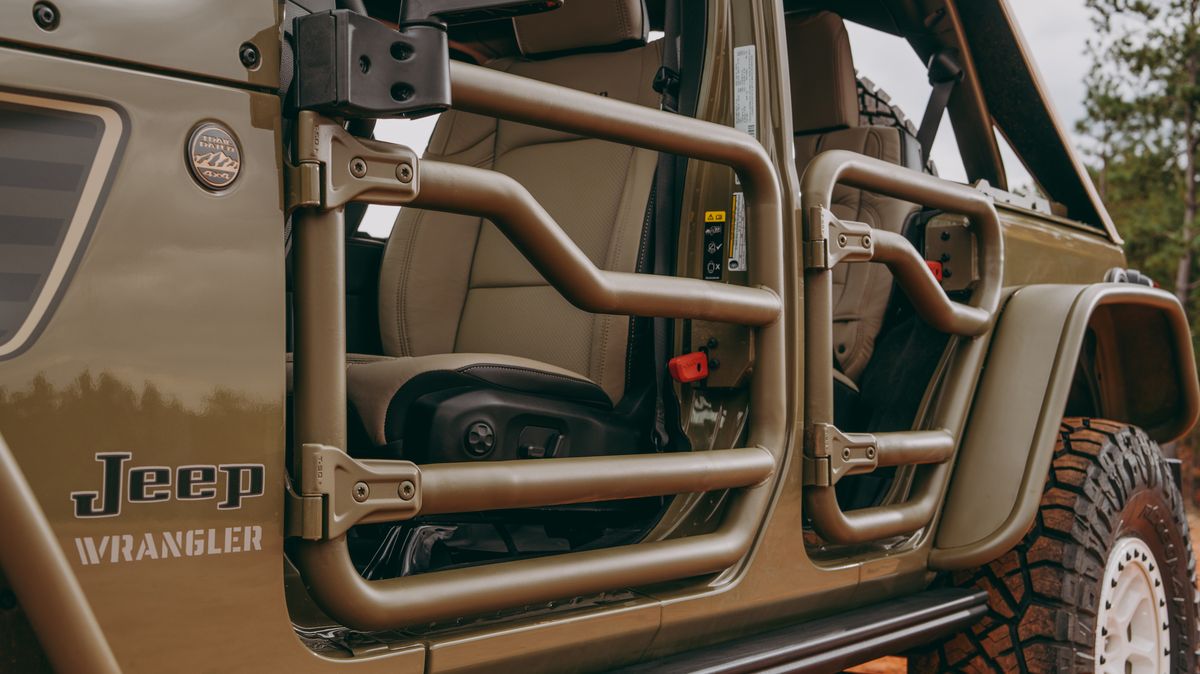 Vpředu vidíme menší nárazník s navijákem a přídavným osvětlením, klasické dveře nahradily jednodušší rámové dveře bez oken, klasickou pevnou střechu tzv. bimini top, tedy látková střecha napnutá od čelního skla po záď vozu. Zajímavostí je pak i rezerva umístěná vzadu v kufru, místo závěsu na pátých dveřích.