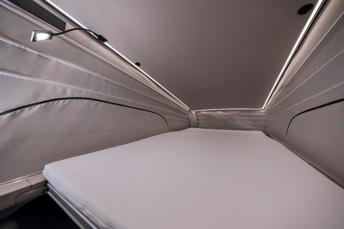 Nová výklopná střecha navíc slibuje o 10 centimetrů více místa pro hlavu, díky čemuž by se mělo ve voze lépe pobývat i spát. Pod výklopnou střechou je tradičně umístěno lůžko, které je nově vybaveno ambientním LED osvětlením s možností změny barevné teploty a novinkou je i posuvné okno ve střeše, zajišťující čerstvý vzduch i nerušený výhled na hvězdy.