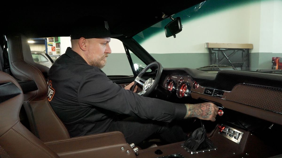 „Měl jsem vizi, že zachováme nějaké původní části toho mustangu, aby byl pocit, že sedím v té klasice, ale zároveň tady máme spoustu nových prvků,“ říká. Zmiňuje mimo jiné více řídicích jednotek, možnost ovládat klimatizaci přes telefon, budíky na zakázku nebo moderní automatickou převodovku se sekvenčním řazením.