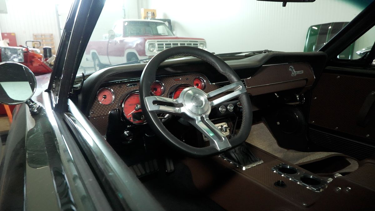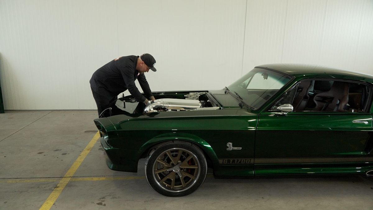 Auto je zvenku poznat i podle výrazného zeleného laku Candy Organic Green. V interiéru má naopak zůstat jeden z původních prvků, originální plechová palubní deska, aby si vůz udržel charakter Mustangu, i když kolem už je všechno řešené jako moderní restomod.