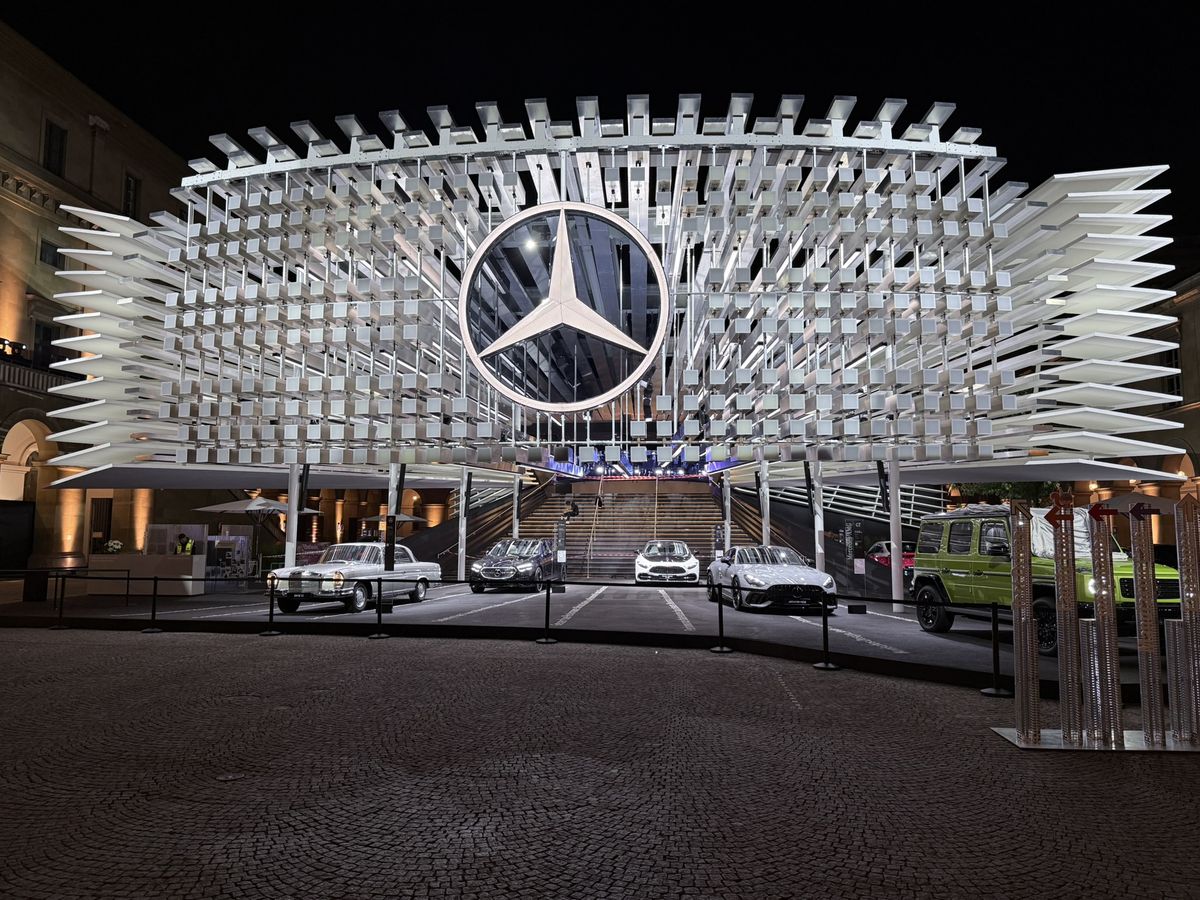 O elektrickou SUV novinku s obří osvětlenou maskou, a ještě větším displejem napříč celou palubní deskou, byl na relativně malém stánku automobilky velký zájem. Mercedes-Benz měl přitom připravený ještě jeden stánek v centru města, kde nabídl více modelů než na samotném výstavišti.