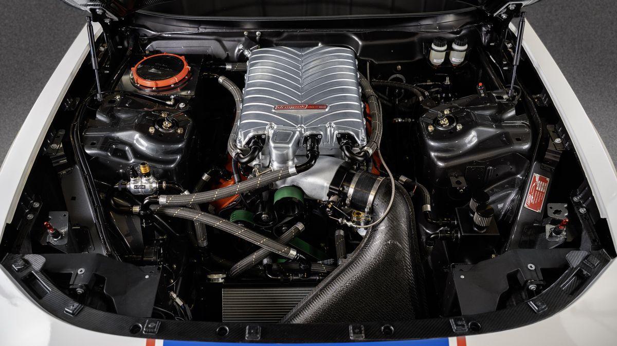 K tomu dostal 5,8litrový motor V8 Hemi s přeplňováním kompresorem Whipple, který je spojený s automatickou třístupňovou převodovkou, pohánějící zadní kola. Přesný výkon bohužel neznáme, s jeho krocením ale pomáhá kompletně přepracovaný podvozek, zatímco brzdy doplňuje padák.