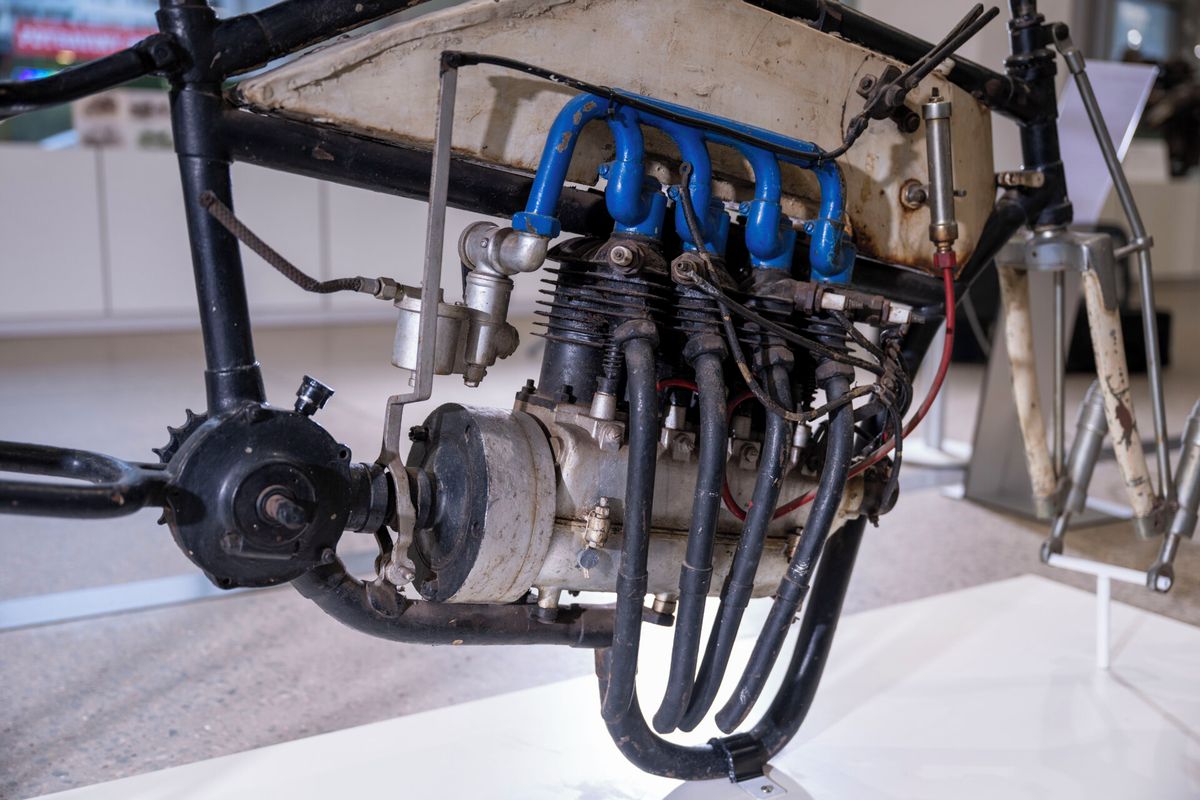 Výjimečnost tohoto konkrétního stroje podtrhuje fakt, že jde o vrcholný, třetí vývojový stupeň původní konstrukce. Zatímco první verze byly v podstatě jen čtyři jednoválce poskládané za sebou, exemplář vystavený v muzeu disponuje plnohodnotným řadovým čtyřválcem s třikrát uloženým klikovým hřídelem.